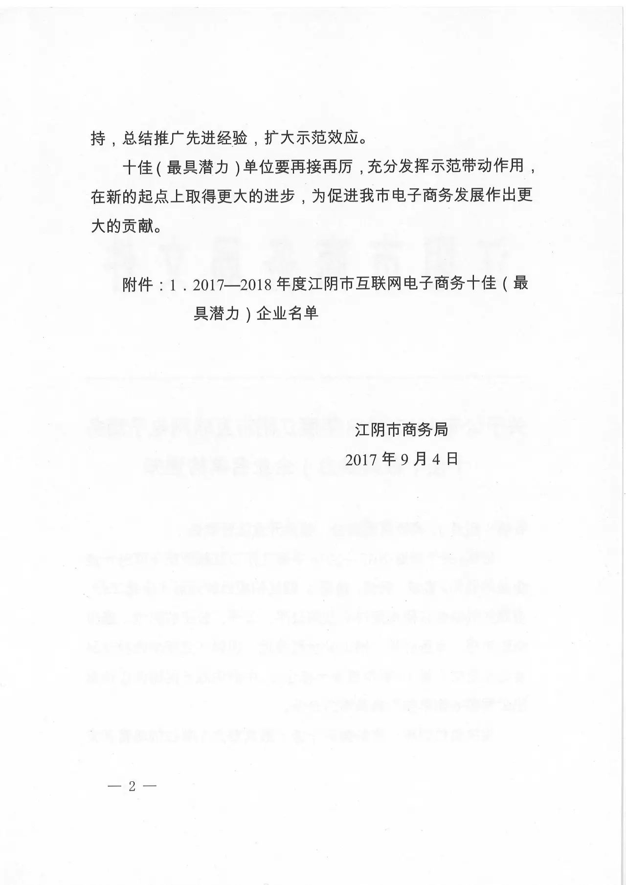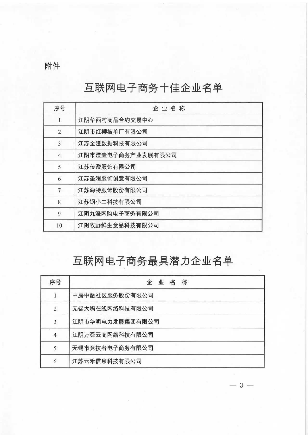 附件:1.2017—2018年度江阴市互联网电子商务十佳(最具潜力)企业名单